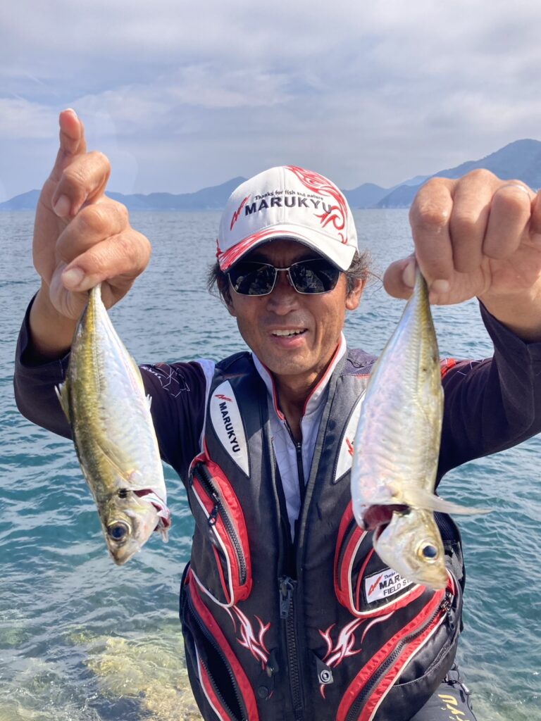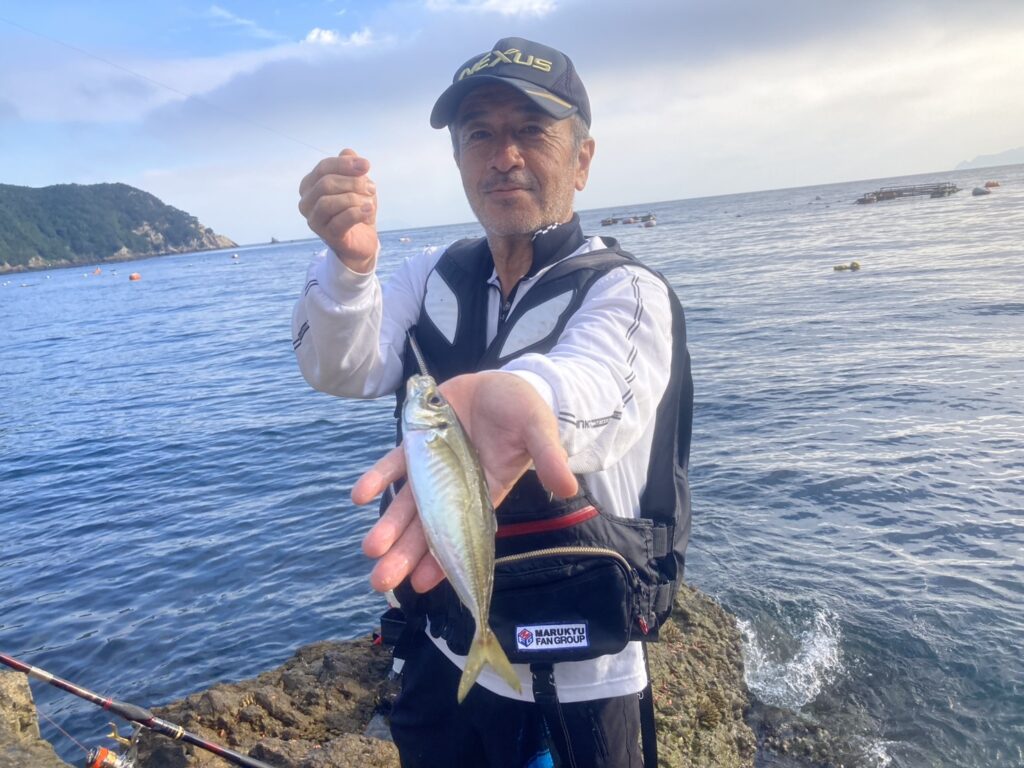 早速準備ができ小川さんが釣り開始してまず釣り上げたのが、ひとつっぱりのアジ…。