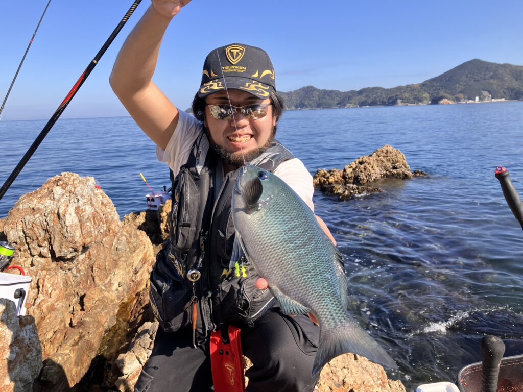 現在、津久見の磯は全体的な中型グレの数釣りが楽しめますよ、これから水温が低下していくと型も揃ってくるので期待大であります。