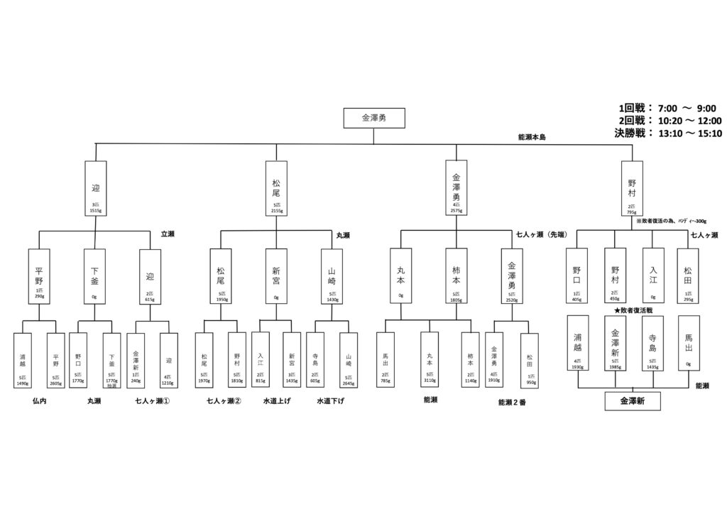 一回戦、二回戦、決勝戦の3回のトーナメント方式で負けた方にもチャンスがあるように敗者復活戦もあります。