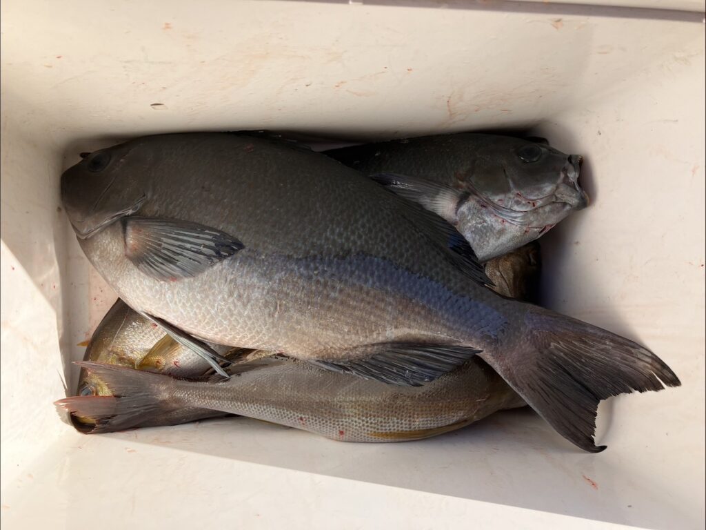 いや〜1尾出るとホッとしますね、意外にグレがアタってくるタナが深く心配なところでありましたが、この後も40cmオーバーのグレやイサキが釣れたりと楽しませてもらいました。