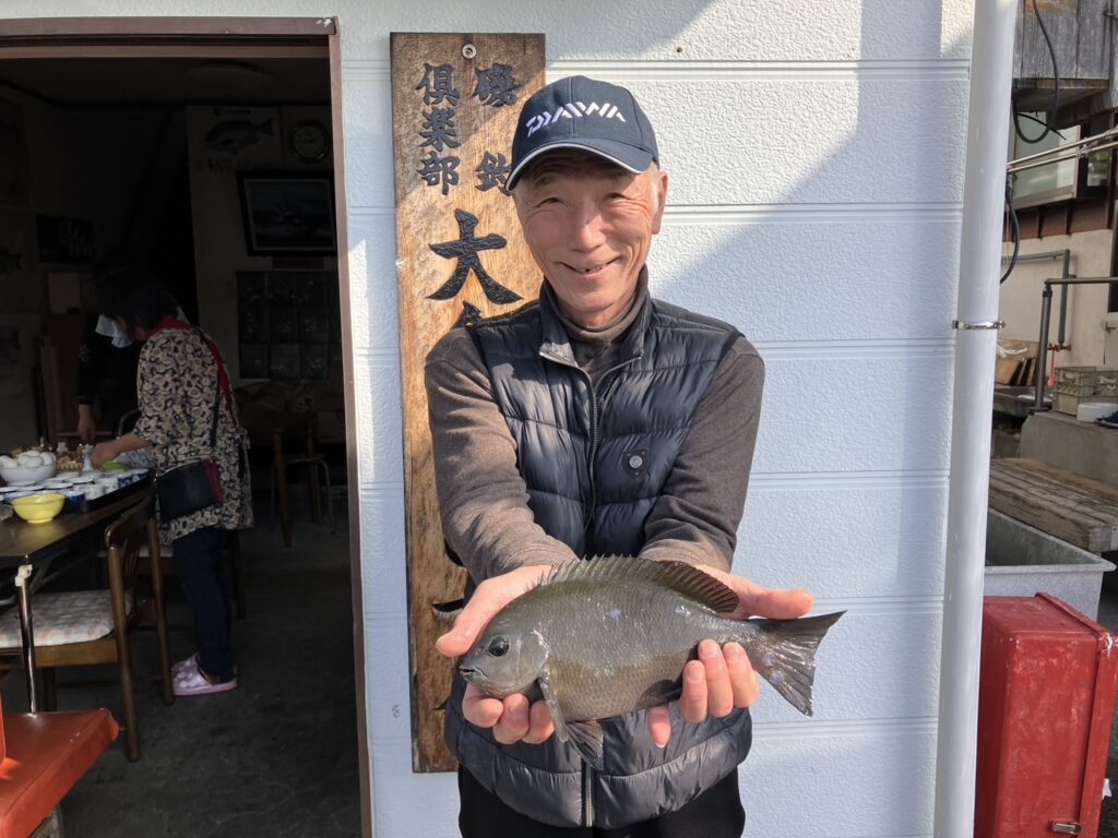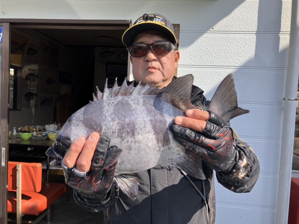 船着けのポイントで竿出しの藍沢さんは、早速アタリを捉えてグレをゲット!