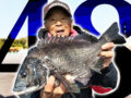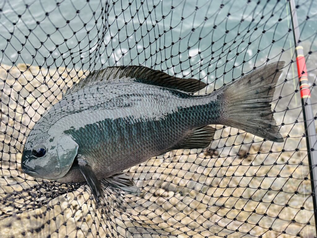 重量感あるパワフルな引きの魚を慎重に浮かしてみると、43㎝の丸々した良型の寒グレでした♪