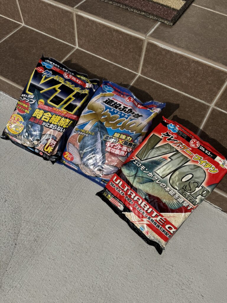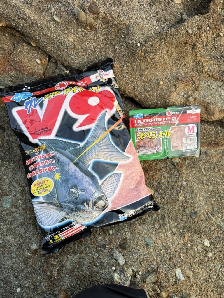 付けエサは「グレ丸」と「くわせオキアミスペシャル」を準備しました。