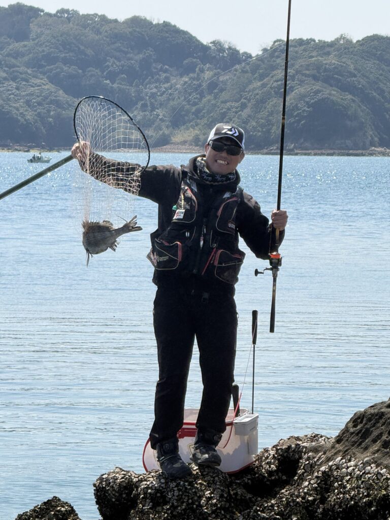 私の釣り座からは魚っ気を感じられませんでしたが、小野さんと金澤さんはしっかりとチヌをキャッチ!