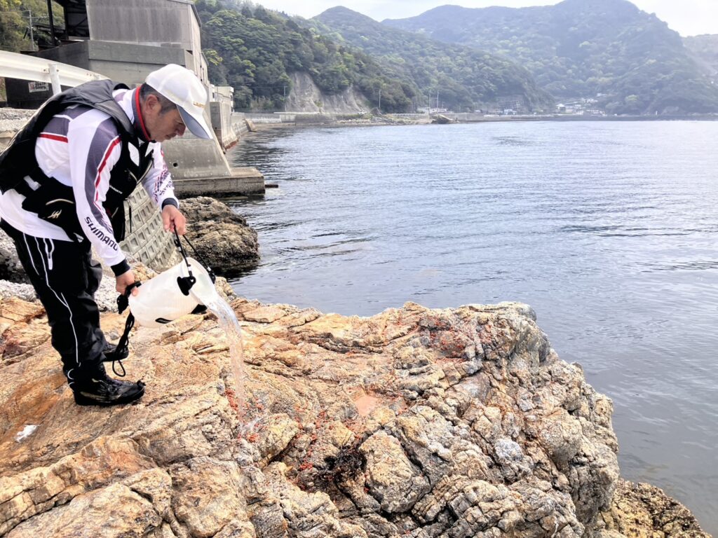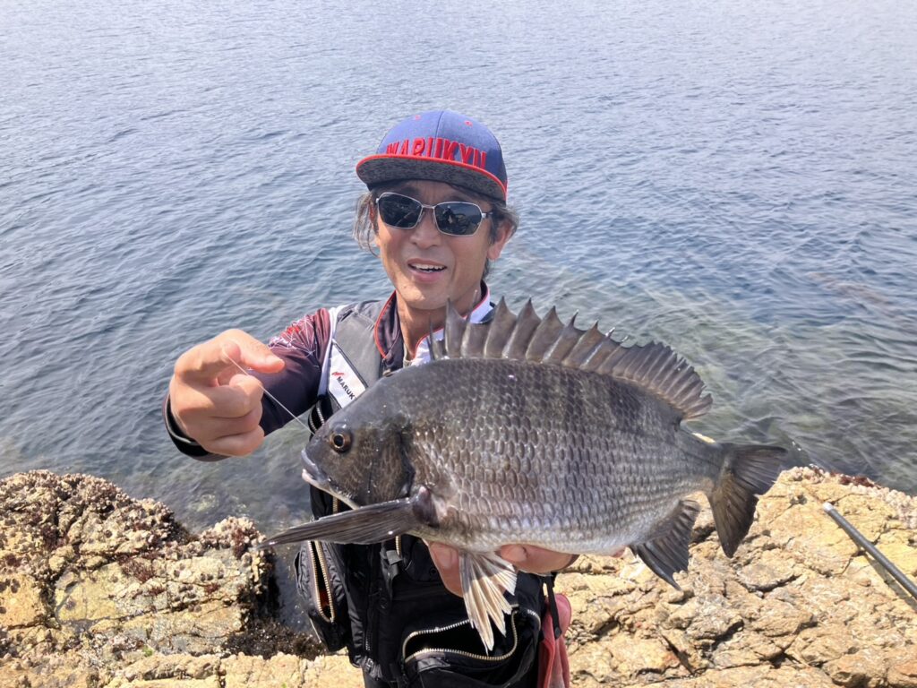 チヌ狙いは地磯ハンターの小川さんの協力なしには成り立たないのであります(笑)