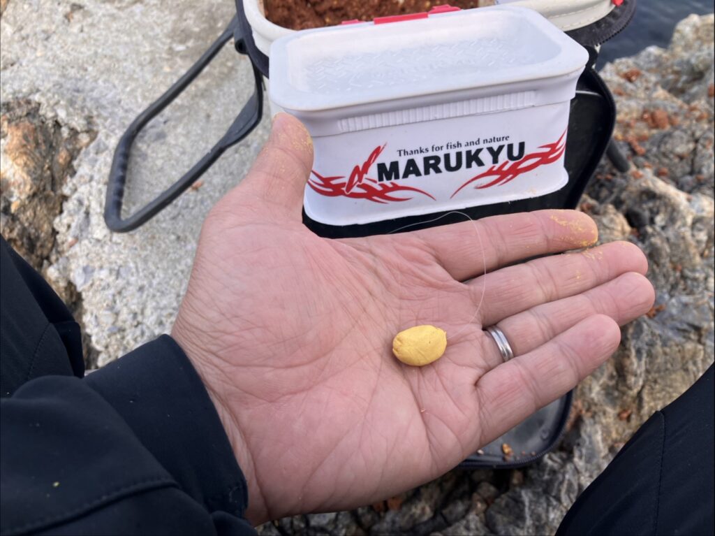 付けエサは「食い渋りイエロー」で、もう1尾追加したところでマキエも無くなり納竿。