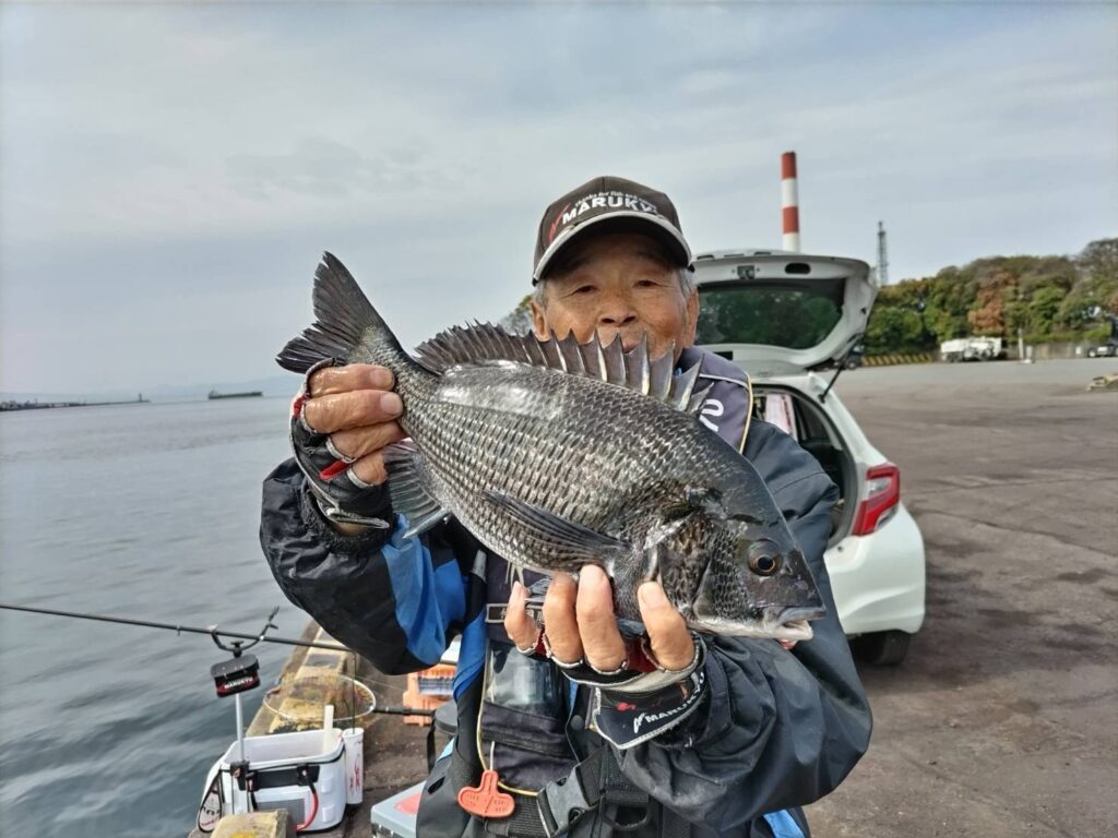 マキエの効果が早かったのか、1匹目のチヌが釣れるのも早かったです。