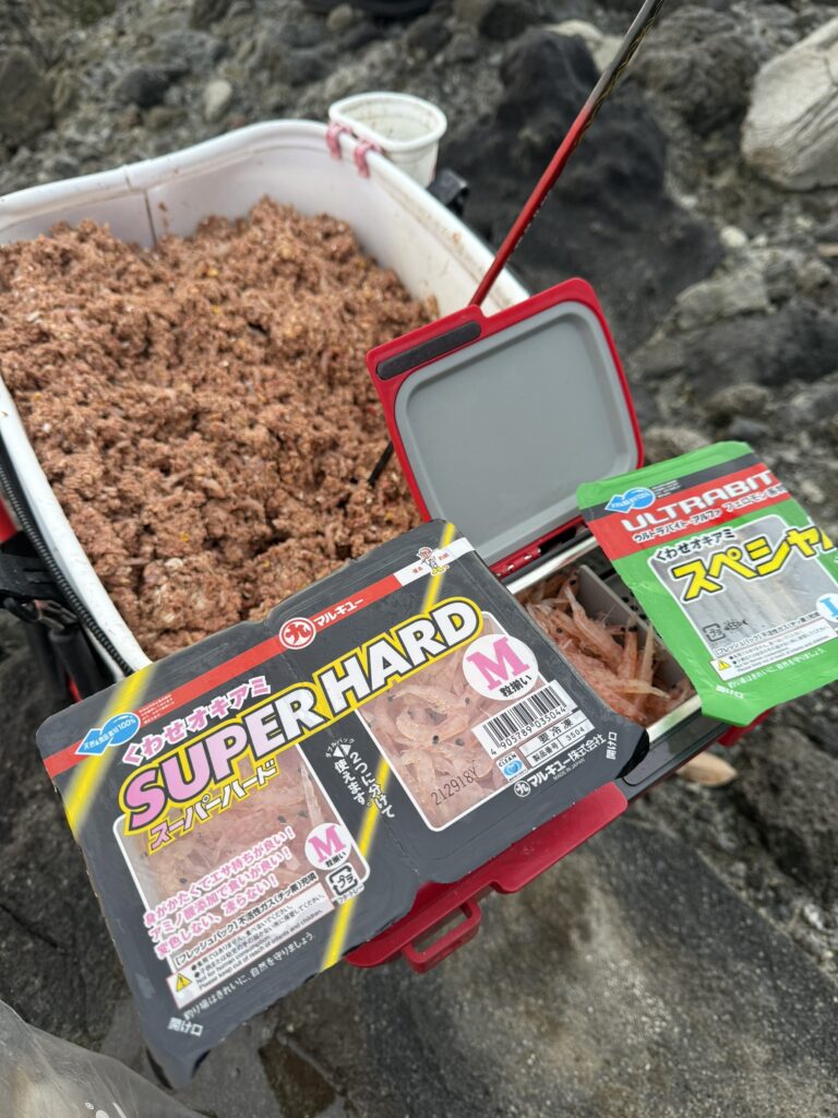 グレは「くわせオキアミスーパーハード」Mと「くわせオキアミスペシャル」Lで食い込みが良かったです。