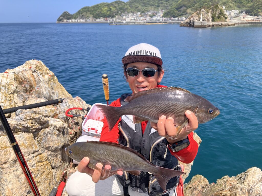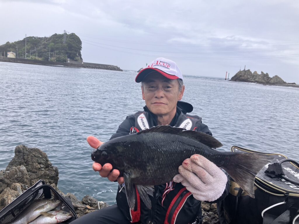 ヤングコンビの志村くん、隈村くんに限ってはライバル心バチバチで熱いバトルを繰り返していき(笑)シニアコンビの我々より2倍いや3倍の釣果でグレにイサキを釣っており、志村くんは本日最大の47cmのグレを釣っていました。