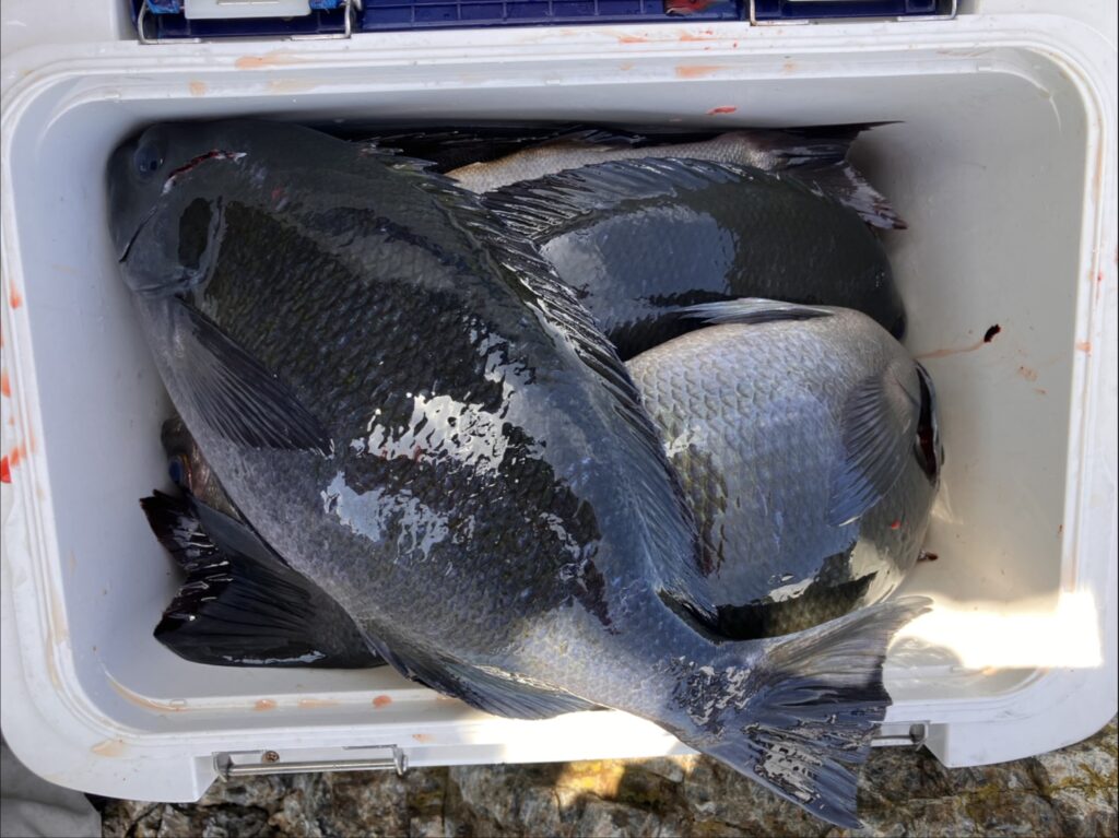 そこから他の釣り人たちを回収していくと本日の釣り人ほぼクーラー満タンでグレにイサキに良く釣れたそうです。