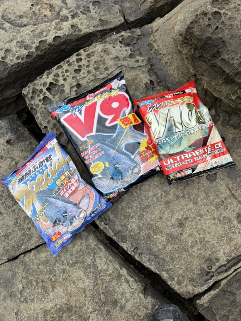 今回のマキエはオキアミ6kgに「遠投ふかせスペシャル」、「グレパワーV9」、「グレパワーV10スペシャル」をブレンド。