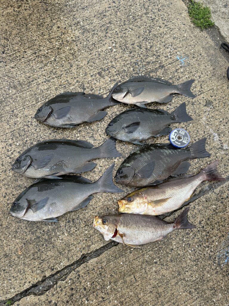 その後は40cm弱のオナガや35cmオーバーのクチブトが釣れてくれて、厳しくもありましたがそこそこ釣れて満足できました。